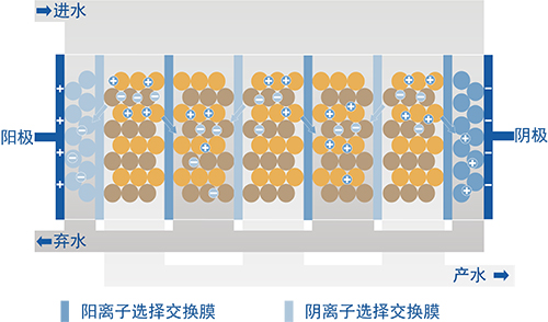 采用EDI技術制備的二級純水,可以提升微生物培養(yǎng)物的穩(wěn)定性和重現(xiàn)性,這是EDI技術的優(yōu)勢。EDI技術是連續(xù)電流去離子技術,在電場的作用下,離子定向遷移穿過選擇性半透膜,通過棄水排放,離子與交換樹脂之間吸附與解離之間的平衡被打破,達到對離子和小分子量的帶電有機物去除的效果,產(chǎn)水水質(zhì)優(yōu)良穩(wěn)定,而且維護方便,節(jié)約能源,運行成本低。
