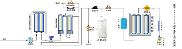 3. 具有超純水系統(tǒng)回收再利用裝置,二級反滲透濃水回收至預(yù)處理系統(tǒng)循環(huán)利用,可降低用戶使用成本,有效節(jié)約用水