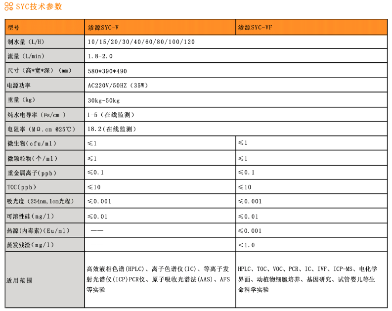 滲源SYC-V系列實(shí)驗(yàn)室超純水機(jī)以純凈水、蒸餾水、二級(jí)R0水為進(jìn)水源,適合國(guó)內(nèi)大多數(shù)實(shí)驗(yàn)室使用,能制取水質(zhì)穩(wěn)定在18.25MQ的超純水,也可以作為中央純水系統(tǒng)的超純水終端處理設(shè)備。