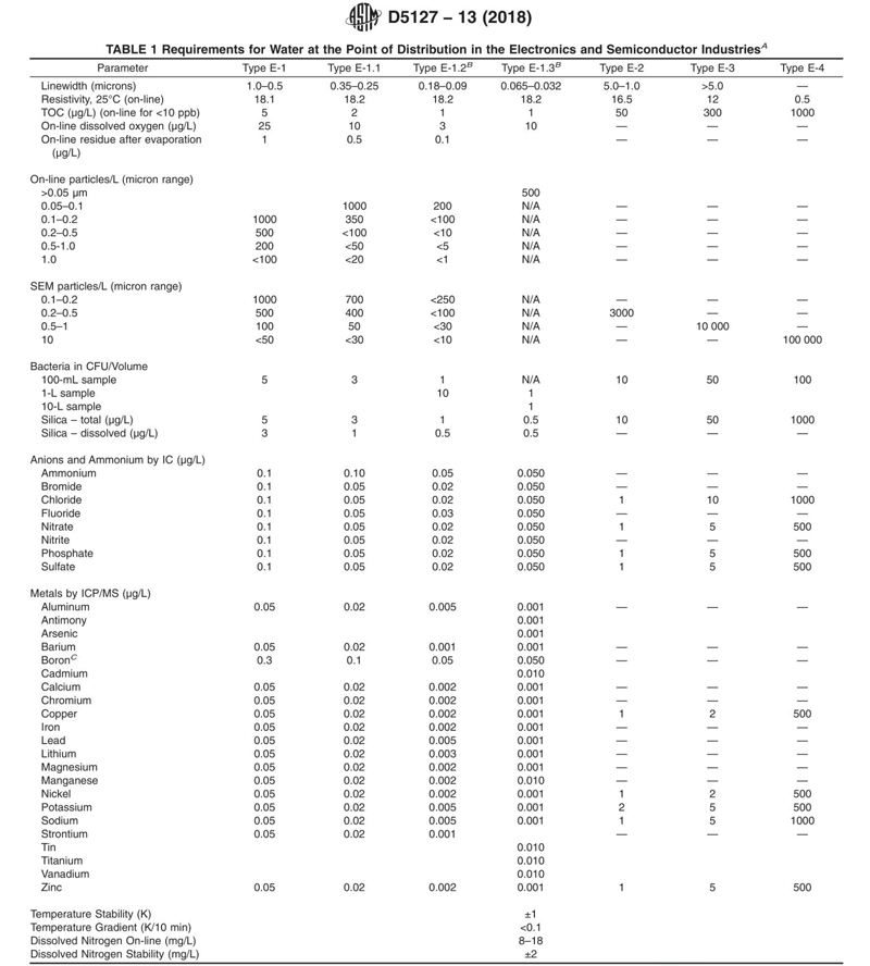 美國ASTM D5127電子及半導體工業(yè)用超純水水質(zhì)標準