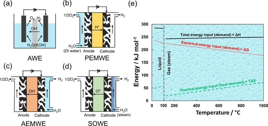 電解水是吸熱過(guò)程,需輸入能量以破壞水分子鍵,總能量需求以焓變(ΔH)表示,其能量構(gòu)成滿足熱力學(xué)方程:ΔH=ΔG+TΔS,其中ΔG為吉布斯自由能(需由電能提供),TΔS為反應(yīng)所需熱量(可來(lái)自環(huán)境或系統(tǒng)余熱)。
