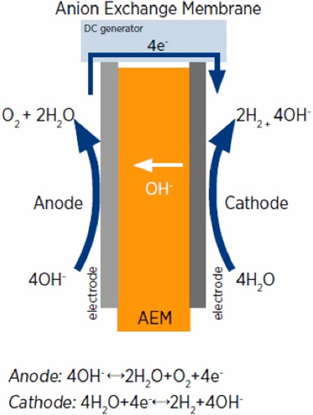 AEMWE是近年發(fā)展的新型技術(shù),以陰離子交換膜為電解質(zhì),傳導(dǎo)OH?,融合AWE與PEMWE的技術(shù)特點(diǎn)。