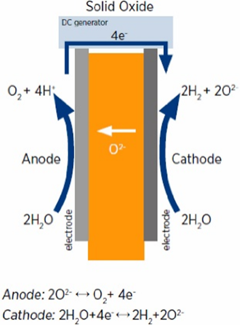 SOWE以固體氧化物為電解質(zhì)(傳導(dǎo)O²?),工作溫度高達(dá)900-1000℃,電極采用鎳基材料,可利用高溫余熱降低能耗。