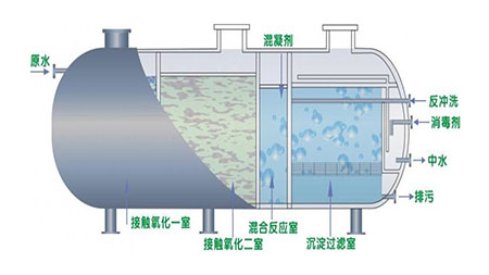 3、污水處理設備中的A/O生物處理工藝采用推流式生物接觸氧化池,它的處理效果優(yōu)于完全混合式或二、三級串聯(lián)完全混合式生物接觸氧化池。該生物氧化池比活性污泥池體積小,對水質適應性強,而且能耐沖擊,性能好,出水水質也極其穩(wěn)定。采用新型彈性立體材料,具有實際比表面積大,微生物掛膜、脫膜方便,而且對有機物去除率高,能提高空氣中氧在水中的溶解度。