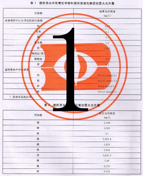 醫(yī)療機(jī)構(gòu)血透中心用水標(biāo)準(zhǔn)有哪些?