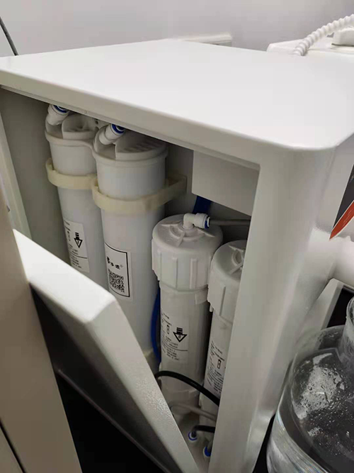 2、打開超純水機(jī)主機(jī),去下純化柱的進(jìn)水和出水PE管,取下純化柱,將準(zhǔn)備好的同等規(guī)格全新純化柱放置于固定卡位上,接好進(jìn)水和出水管,確認(rèn)純化柱已經(jīng)固定好。